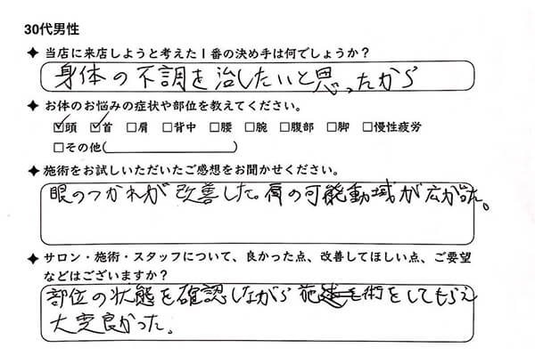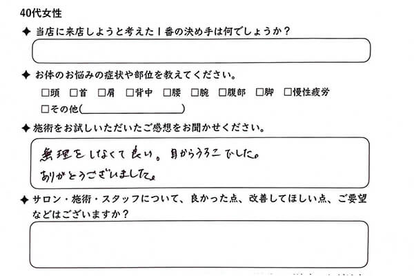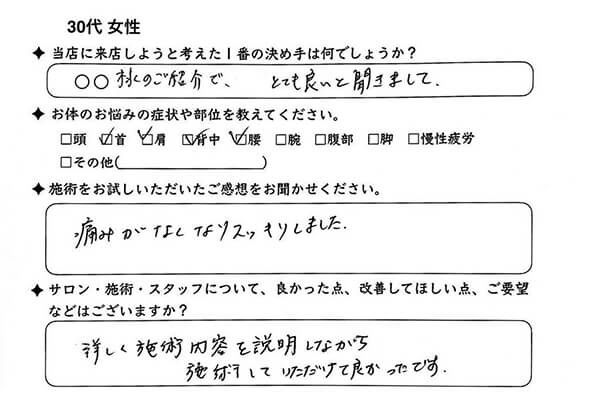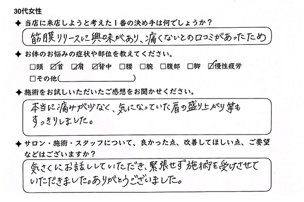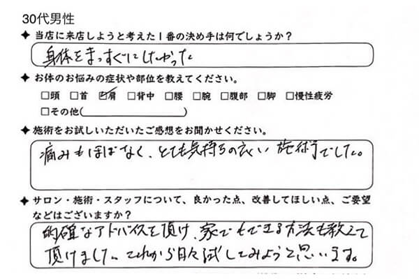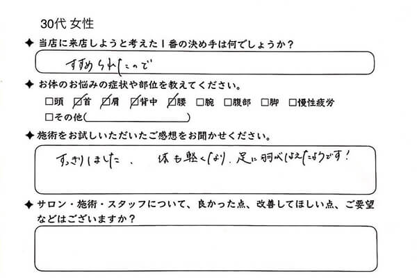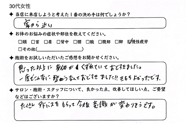 次回の施術がとても楽しみです!!体が変化するのを楽しみたいと思います。