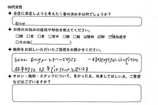 身体が少しずつポカポカ温まってくる感覚や、詰まりがフワッと無くなる感覚は初めての経験でした。