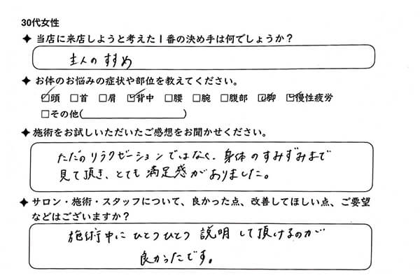 私以上に私の体のことを大切に扱ってもらった様な気がして幸せになりました。